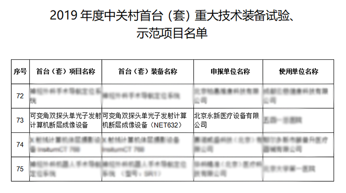近日,由公司自主研制的NET632型可變角雙探頭SPECT榮獲2019年度中關(guān)村首臺(套)重大技術(shù)裝備試驗、示范項目。這是公司繼動物PET/SPECT/CT后又一創(chuàng)新產(chǎn)品入圍此項目。